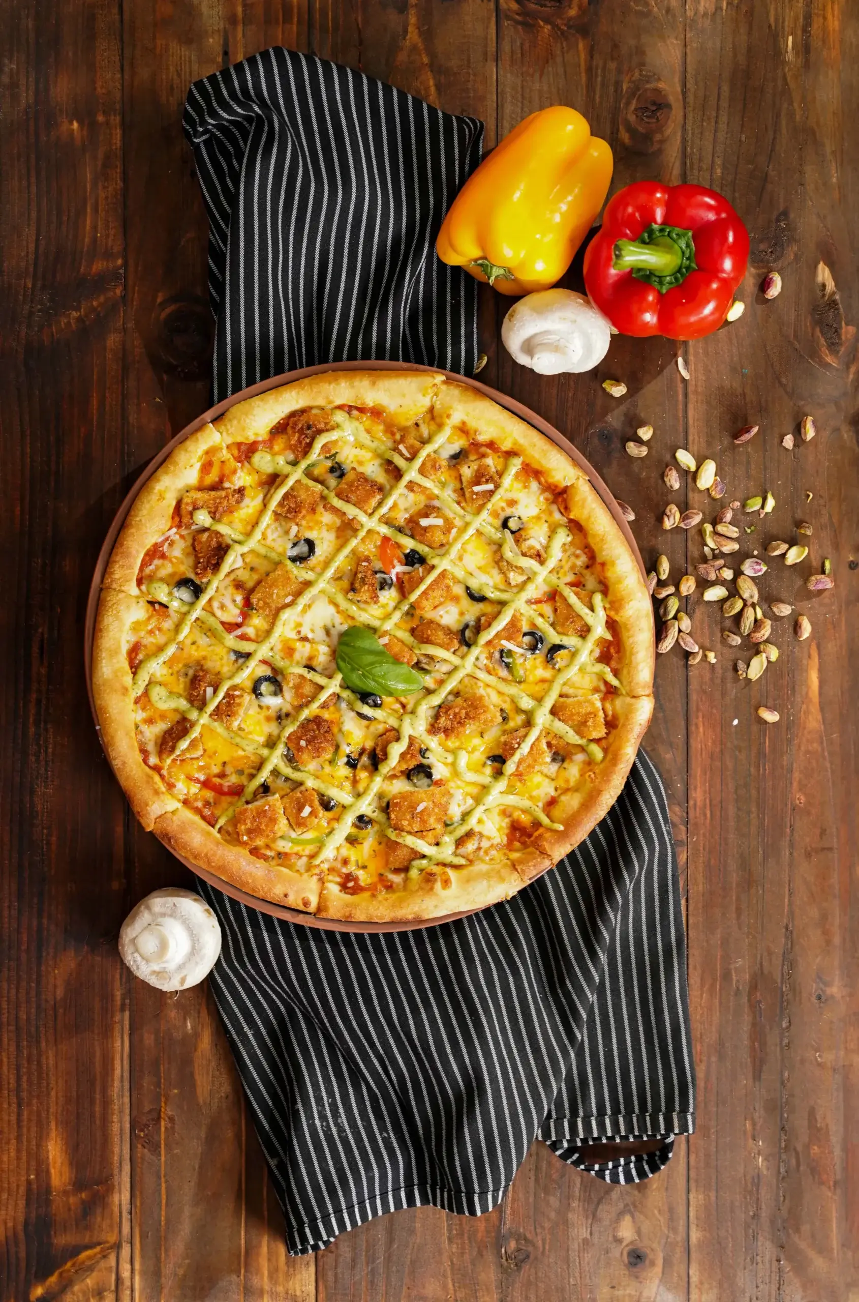مزيج فريد من صلصة الريحان الطازج مع الفستق، مغطى بالدجاج